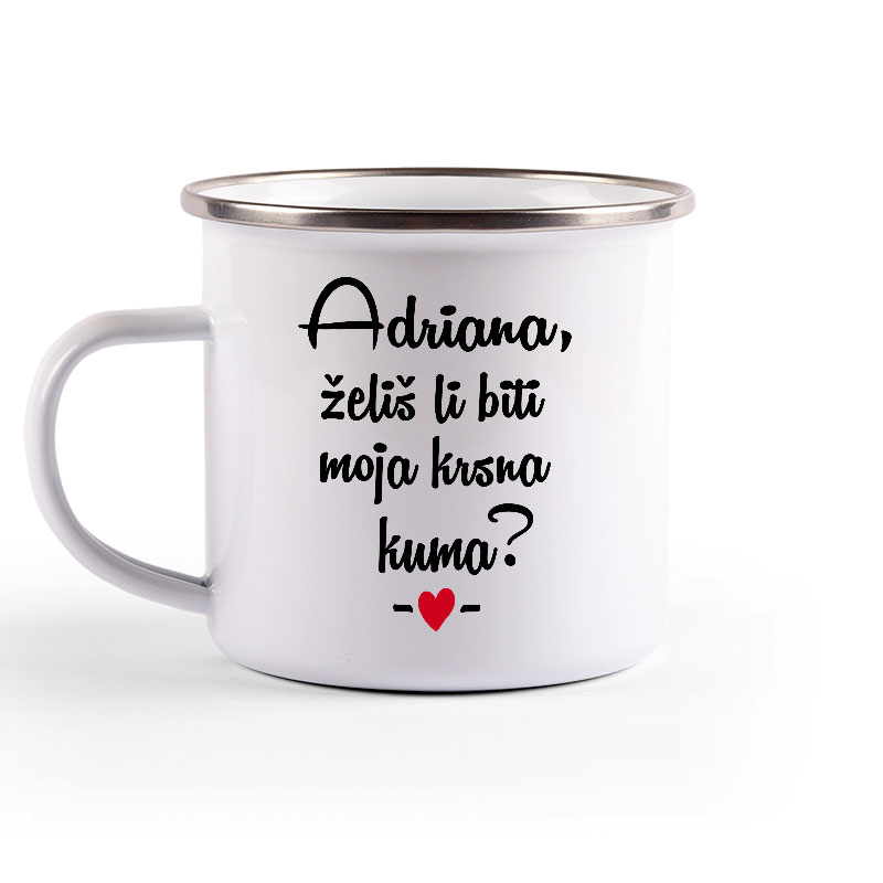 Metalni lončić, enamel mug, sa srebrnim rubom.