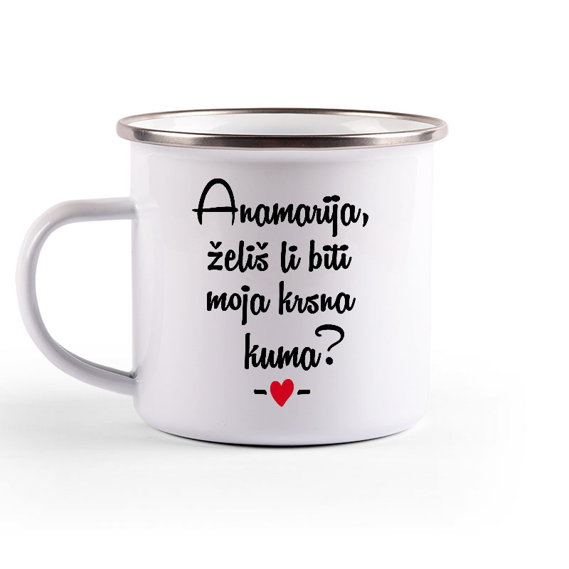 Metalni lončić, enamel mug, sa srebrnim rubom.