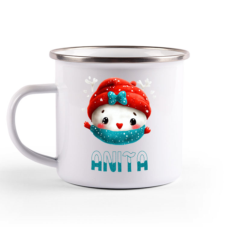 Metalni lončić, enamel mug, sa srebrnim rubom.