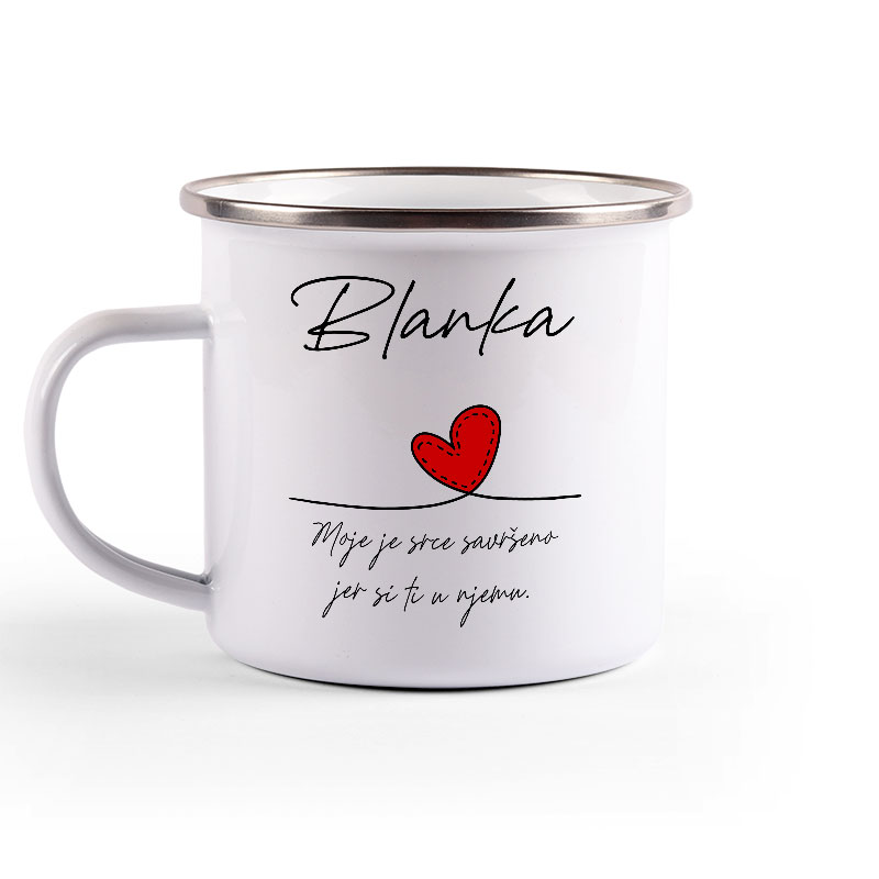 Metalni lončić, enamel mug, sa srebrnim rubom.