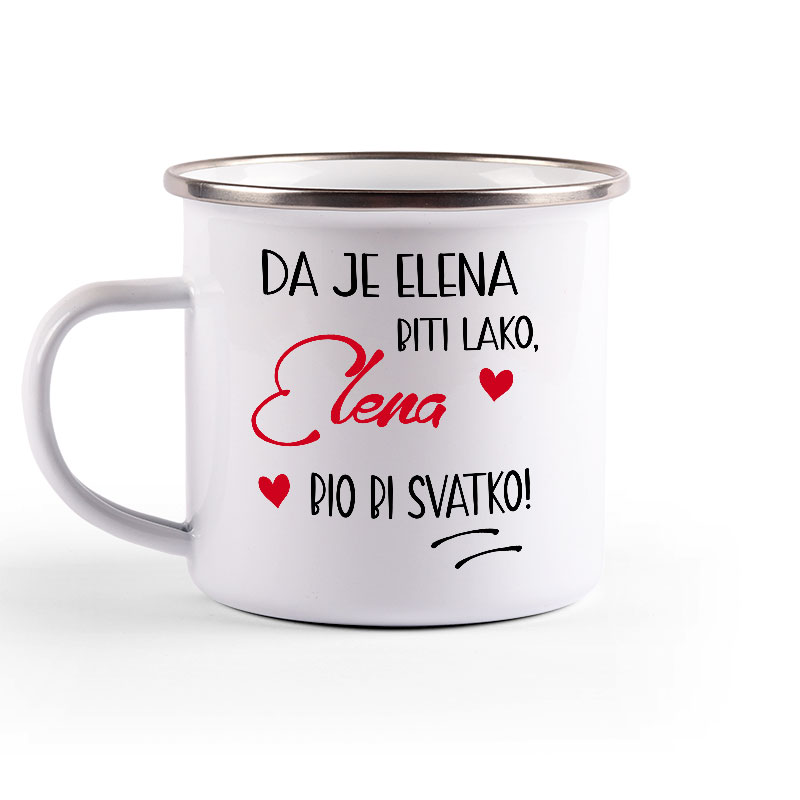 Metalni lončić, enamel mug, sa srebrnim rubom.