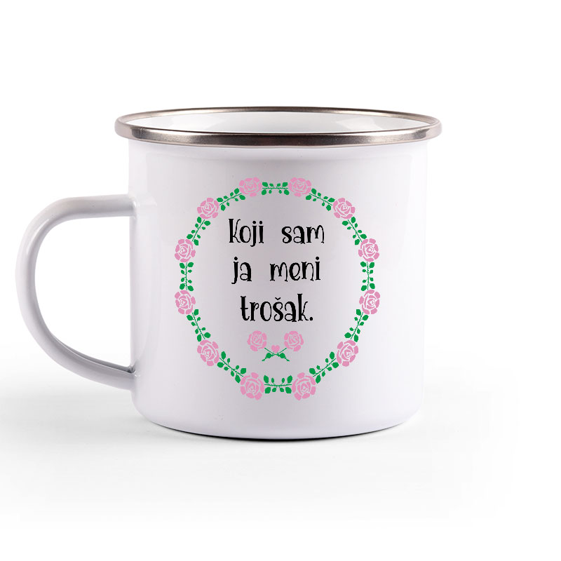 Metalni lončić, enamel mug, sa srebrnim rubom.