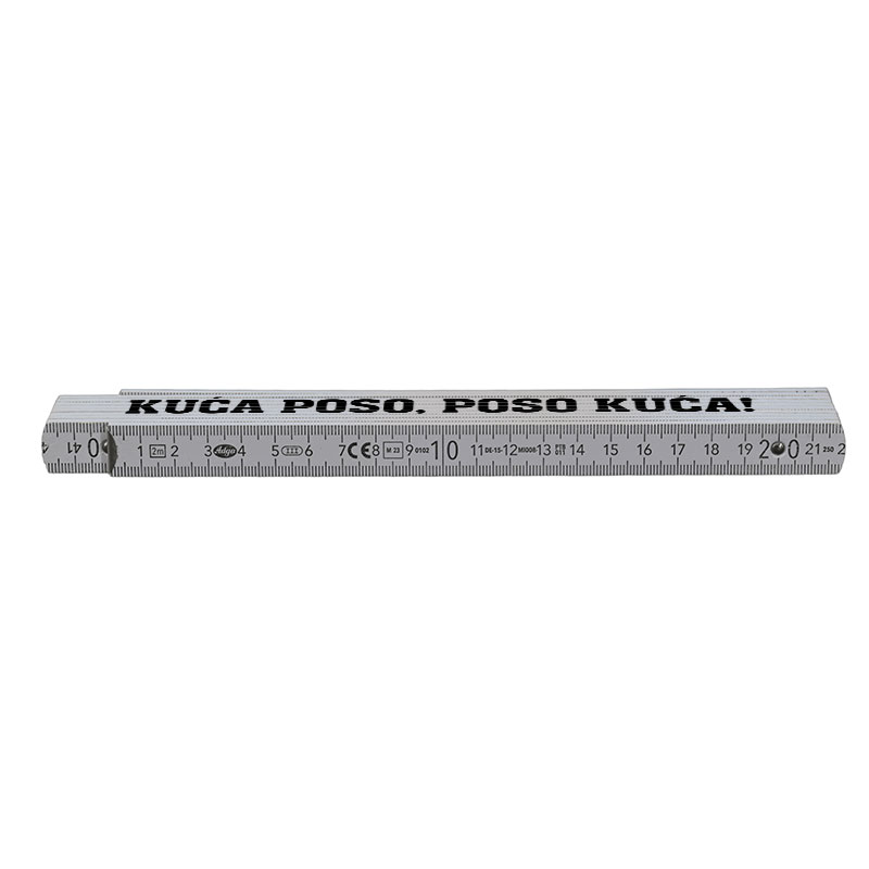 Ovaj praktični i izdržljivi sklopivi metar duljine 2 metra idealan je za svakodnevnu upotrebu u kućanstvu, na poslu ili za hobije. Na bočne površine metra možemo dodati personalizirani tisak po vašoj želji – bilo da se radi o logotipu, natpisu, ilustraciji ili posebnoj poruci. Savršeno za poklon: Kombinacija funkcionalnosti i personalizacije čini ga idealnim darom za obrtnike, majstore i kreativce.
