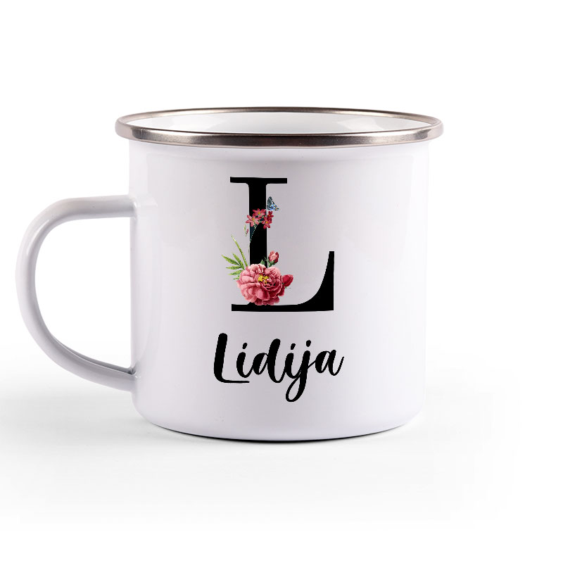 Metalni lončić, enamel mug, sa srebrnim rubom.