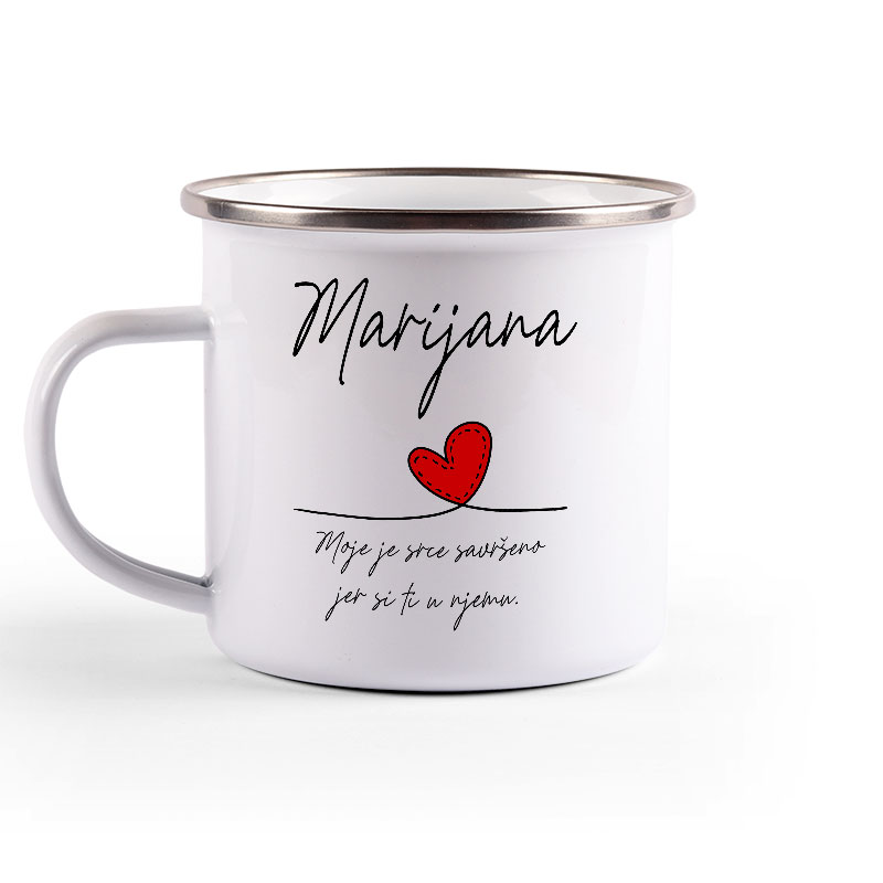 Metalni lončić, enamel mug, sa srebrnim rubom.