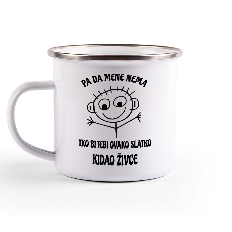 Metalni lončić, enamel mug, sa srebrnim rubom.