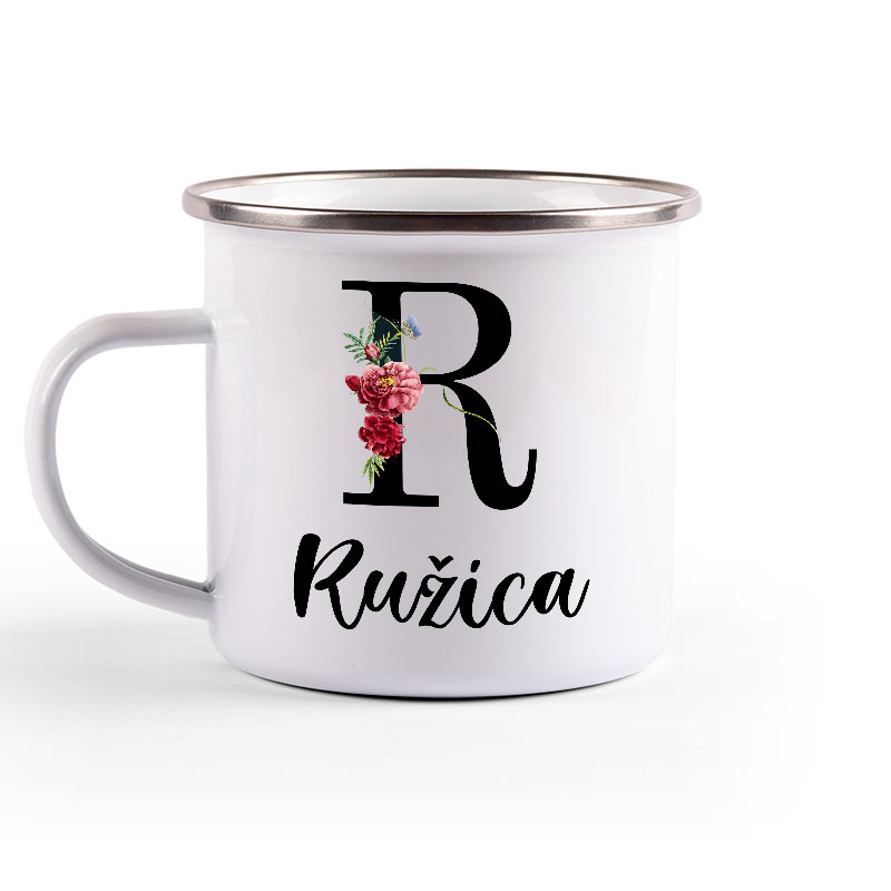 Metalni lončić, enamel mug, sa srebrnim rubom.