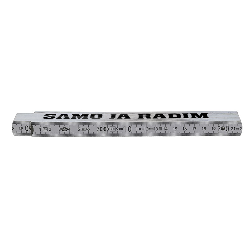 Ovaj praktični i izdržljivi sklopivi metar duljine 2 metra idealan je za svakodnevnu upotrebu u kućanstvu, na poslu ili za hobije. Na bočne površine metra možemo dodati personalizirani tisak po vašoj želji – bilo da se radi o logotipu, natpisu, ilustraciji ili posebnoj poruci. Savršeno za poklon: Kombinacija funkcionalnosti i personalizacije čini ga idealnim darom za obrtnike, majstore i kreativce.