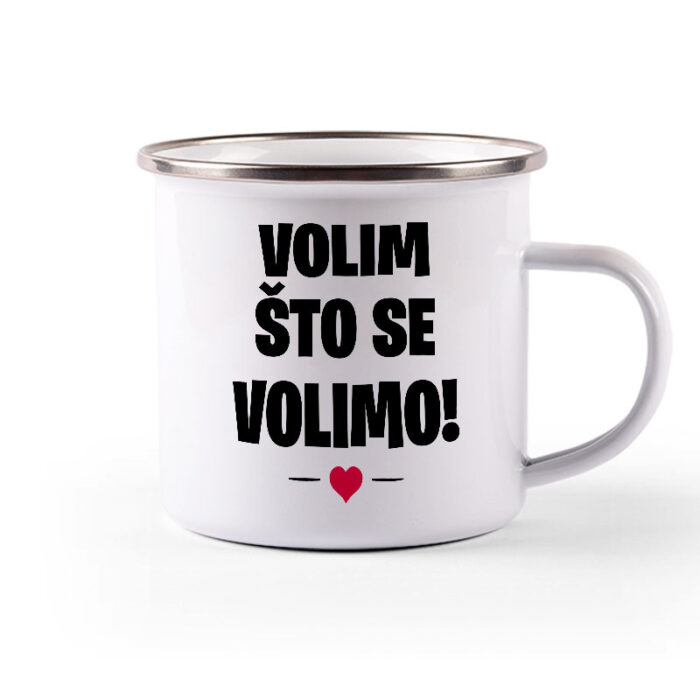 Metalni lončić, enamel mug, sa srebrnim rubom.